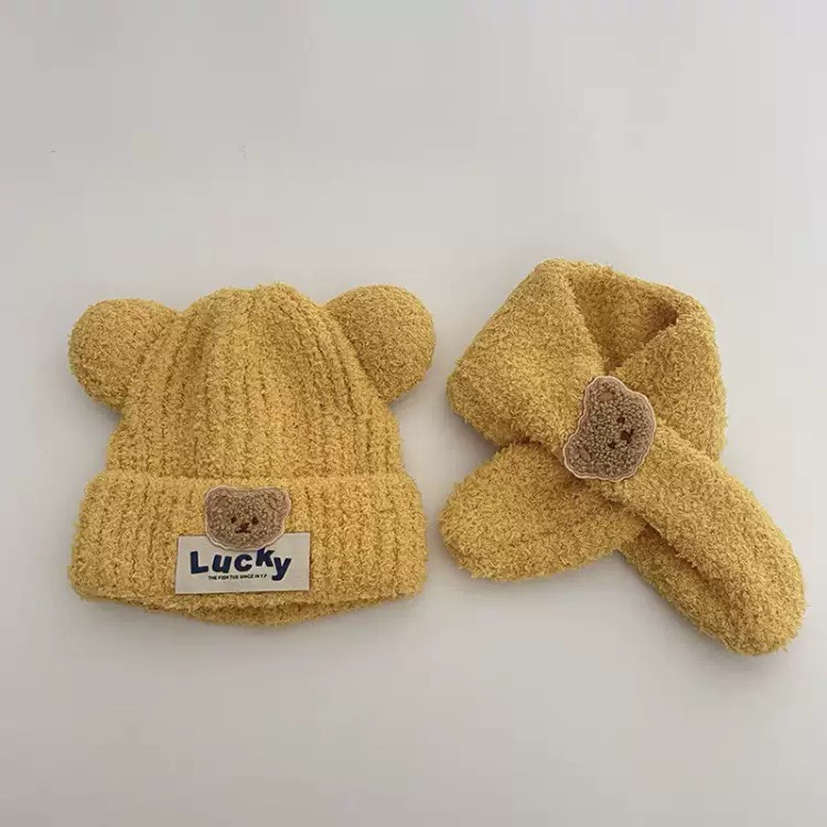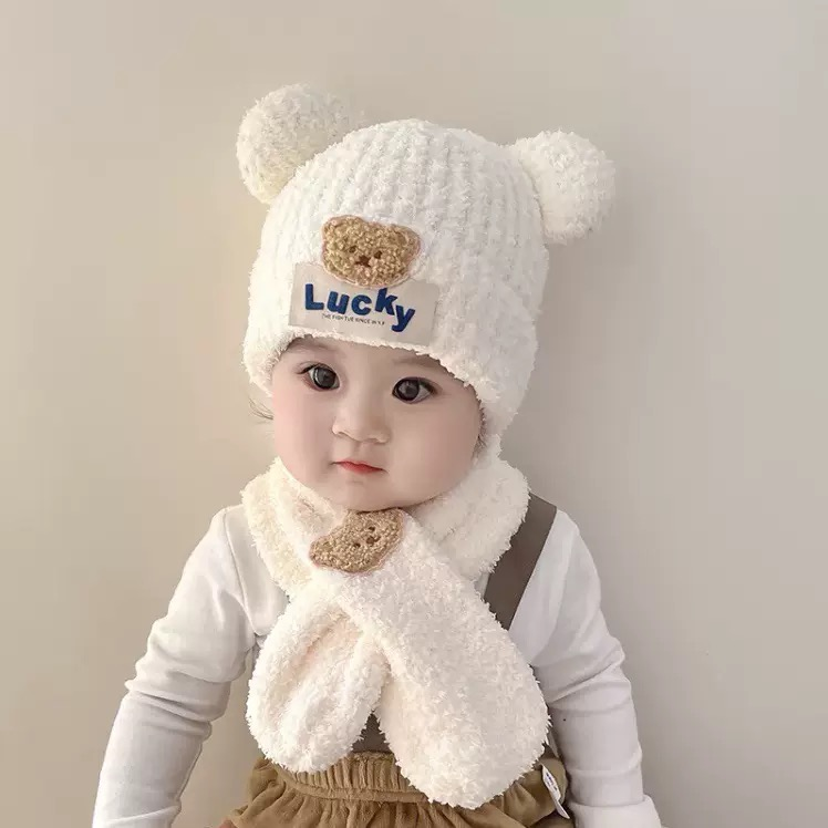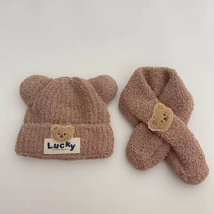 5分鐘前嬰兒帽子秋冬季可愛小熊寶寶毛絨護耳帽圍巾套裝保暖男女童套頭帽 - 商家推薦95%客戶選擇2入組NT$1199