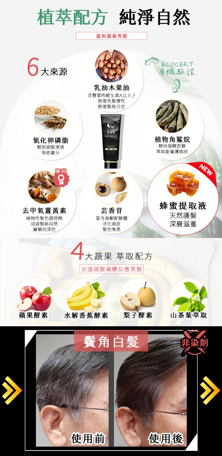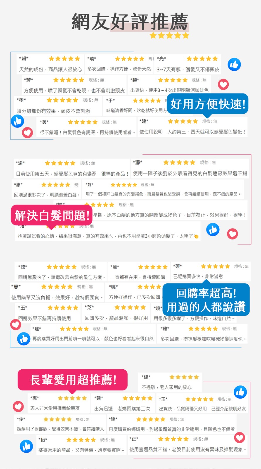4分鐘前買一送一【日本熱銷】你有白髮煩惱嗎?快來試試一噴一抹就黑髮 全新第五代髪速黑 植萃護髮素噴霧+植萃護髮素 - 【限量專賣】買一送一·2入組-NT$999 【植萃護髮噴霧+植萃護髮素】