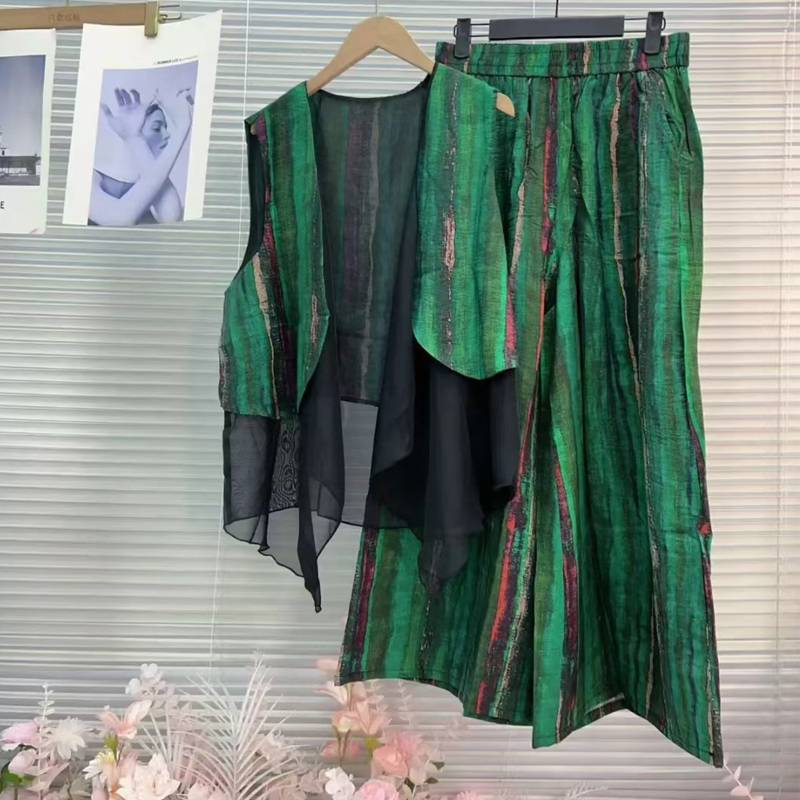 5分鐘前居然這麼顯瘦!色彩感十足的氣質馬甲套裝也太美了吧,假兩件馬甲搭配條紋寬褲,妥妥的慵懶感~ - 【限時下殺】馬甲+褲子一套 僅需 NT$998