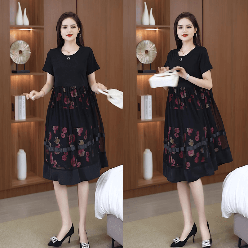 12分鐘前2025夏季新款時尚假兩件寬鬆遮肚網紗連衣裙 - 【尊享三入】僅需NT$1298(均價NT$432)