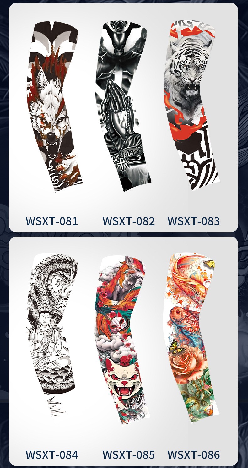 7分鐘前夏季騎行防曬紋身袖套仿真刺青速幹護臂戶外運動遮陽透氣高彈冰袖 - 體驗!!【買二送二】4入組-NT$980